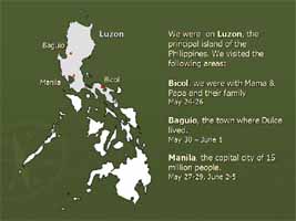 Our first destination was the Bicol region, where Dulce's mom is from. We took a 7-hour van ride from Manila. The beautiful scenery along the way disproved a lot of notions I had about this country.